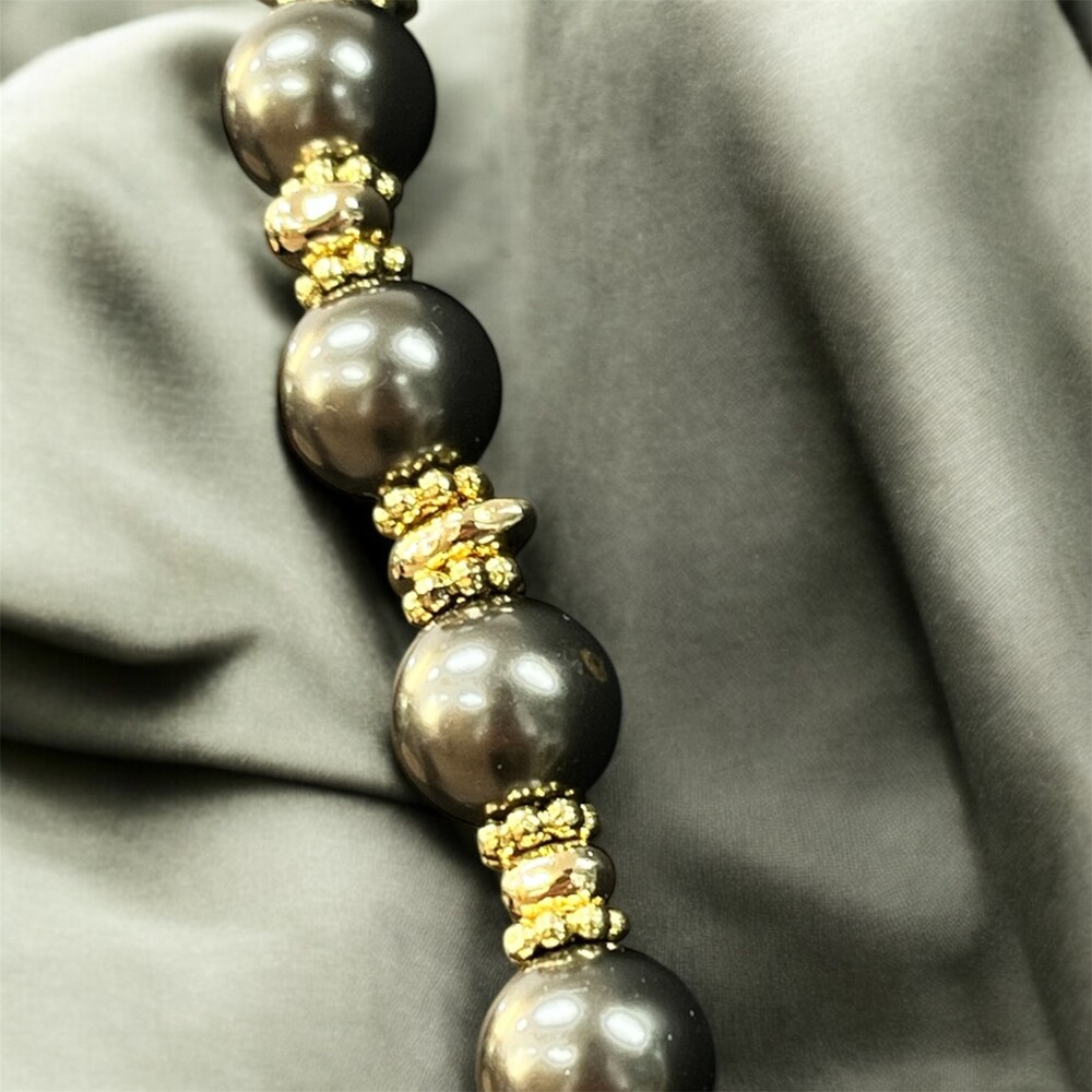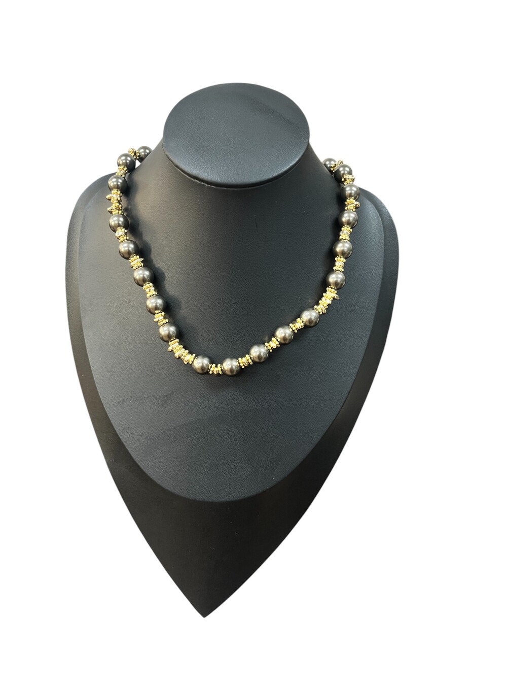이 목걸이는 검은 진주의 부드러움과 금의 빛을 우아하게 결합했습니다. 둥글고 윤기 나는 진주는 시대를 초월한 우아함을 선사하는 반면, 금 요소는 현대성과 세련미를 더합니다. 이 놀라운 대조는 독특한 보석을 만들어냅니다. 가장 고전적인 것부터 가장 대담한 것까지 모든 의상을 돋보이게 하는 데 완벽합니다. 아무도 무관심하게 만들지 않는 보석을 선물하세요.