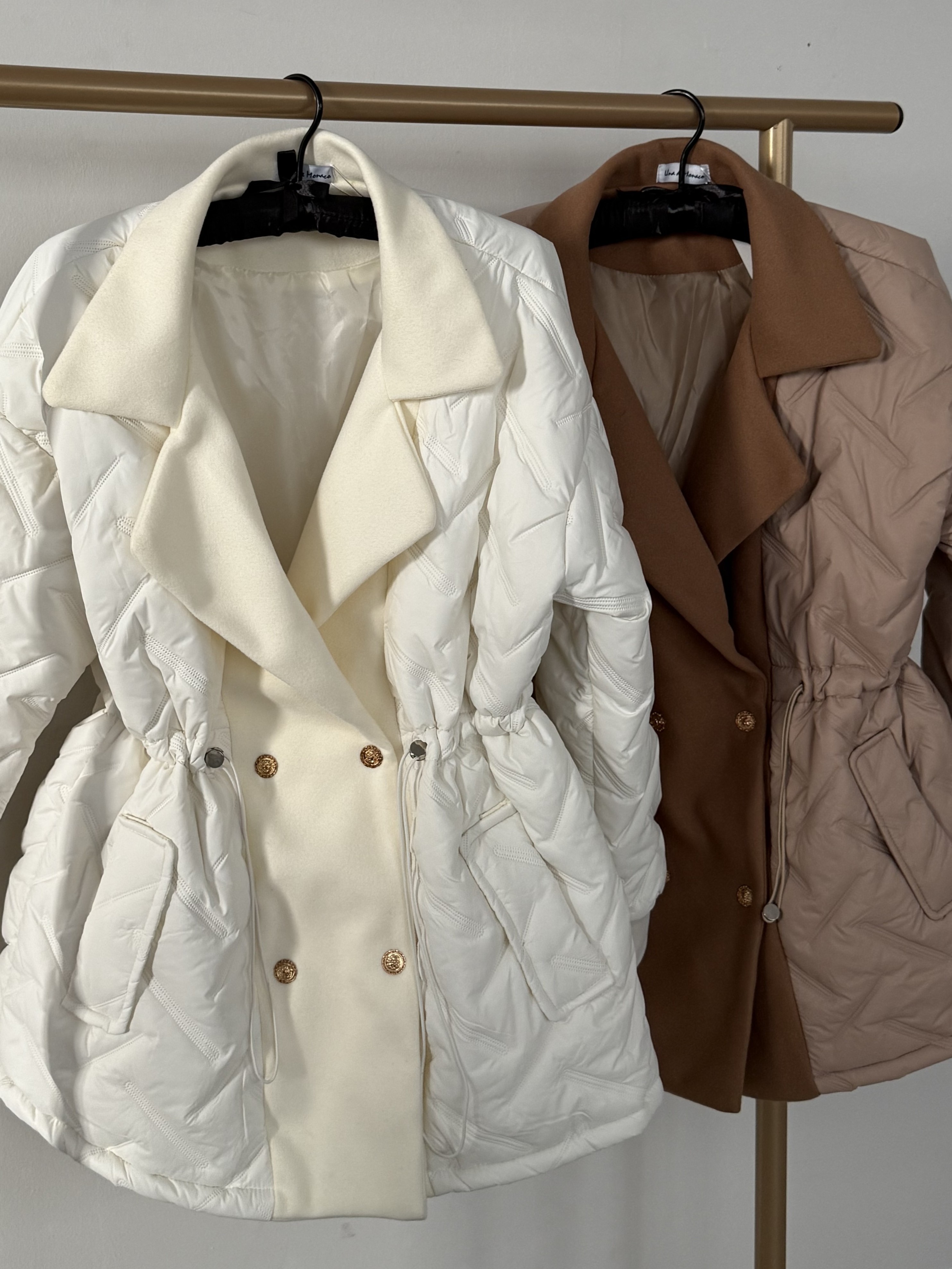 세레나 퀼팅 스트링 패딩 자켓 (화이트/베이지)