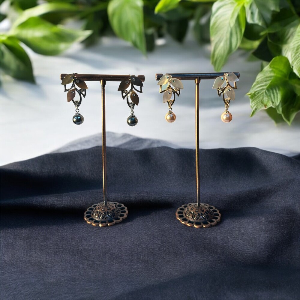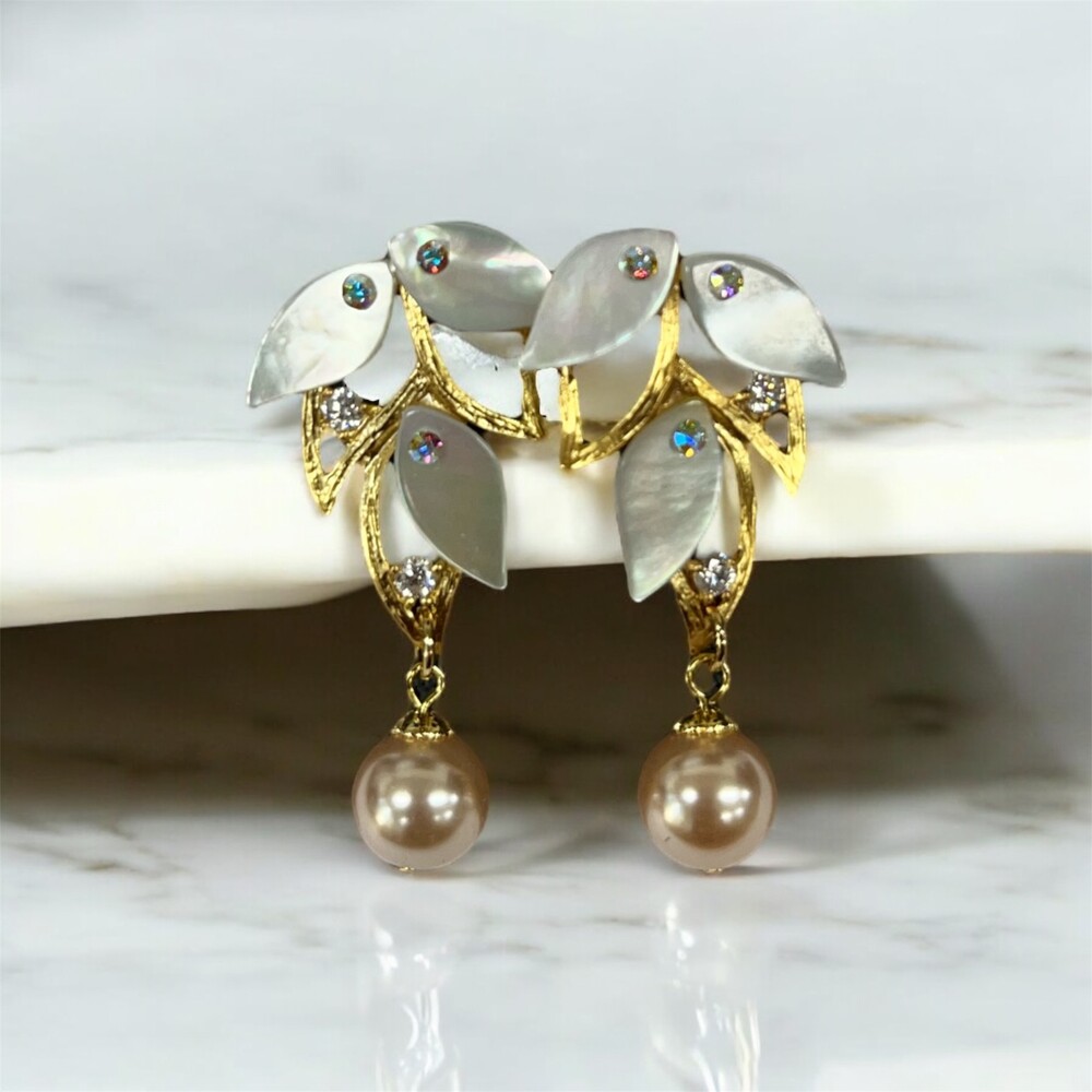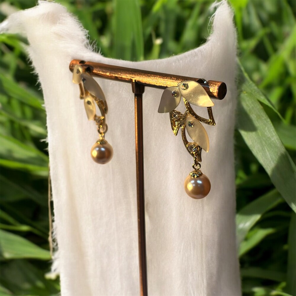 자연에서 영감을 받은 디자인의 이 귀걸이에 매료되어 보세요. 고귀하고 빛나는 소재인 진주조개를 잎 모양으로 가공하여 가볍고 여성스러운 효과를 냈습니다. 매달린 진주는 부드러움과 로맨스를 선사합니다.