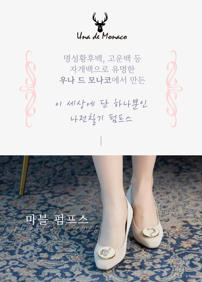 "우나 드 모나코"가 한국전통예술 자개공예를 사용하여 비건가죽라인으로 핸드백에 이어 여성신발을 제작하였습니다. 이번 제품은 아름다운 전통과 현대적인 가치의 조화를 찾아내고 소비자들에게 널리 알리겠다는 창업이념으로 새로운 소재를 개발하겠다는 것에서 출발하였습니다.
