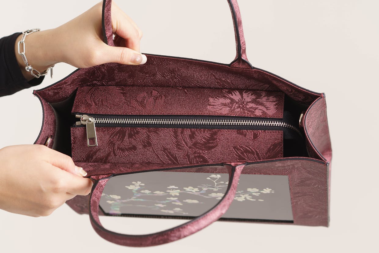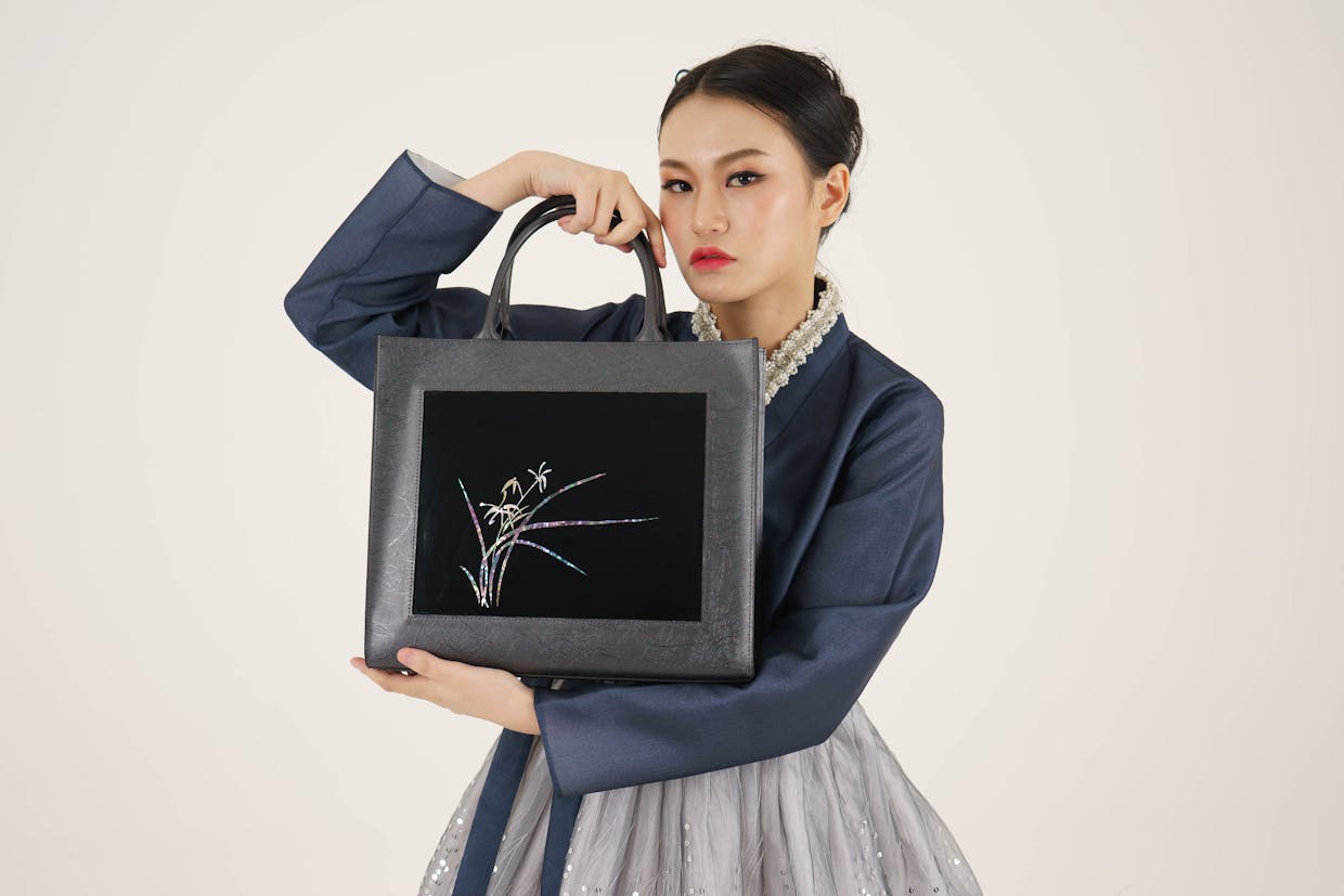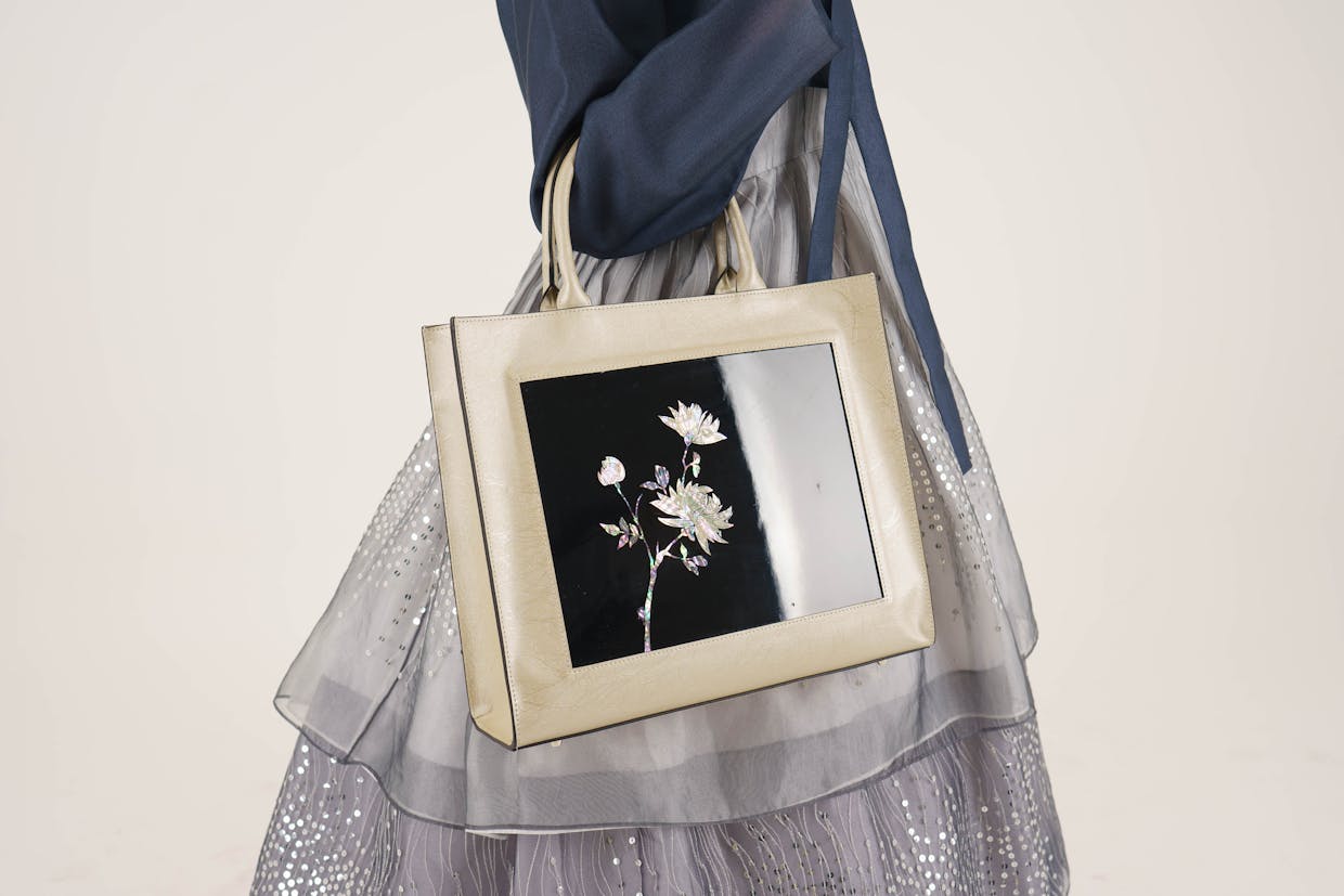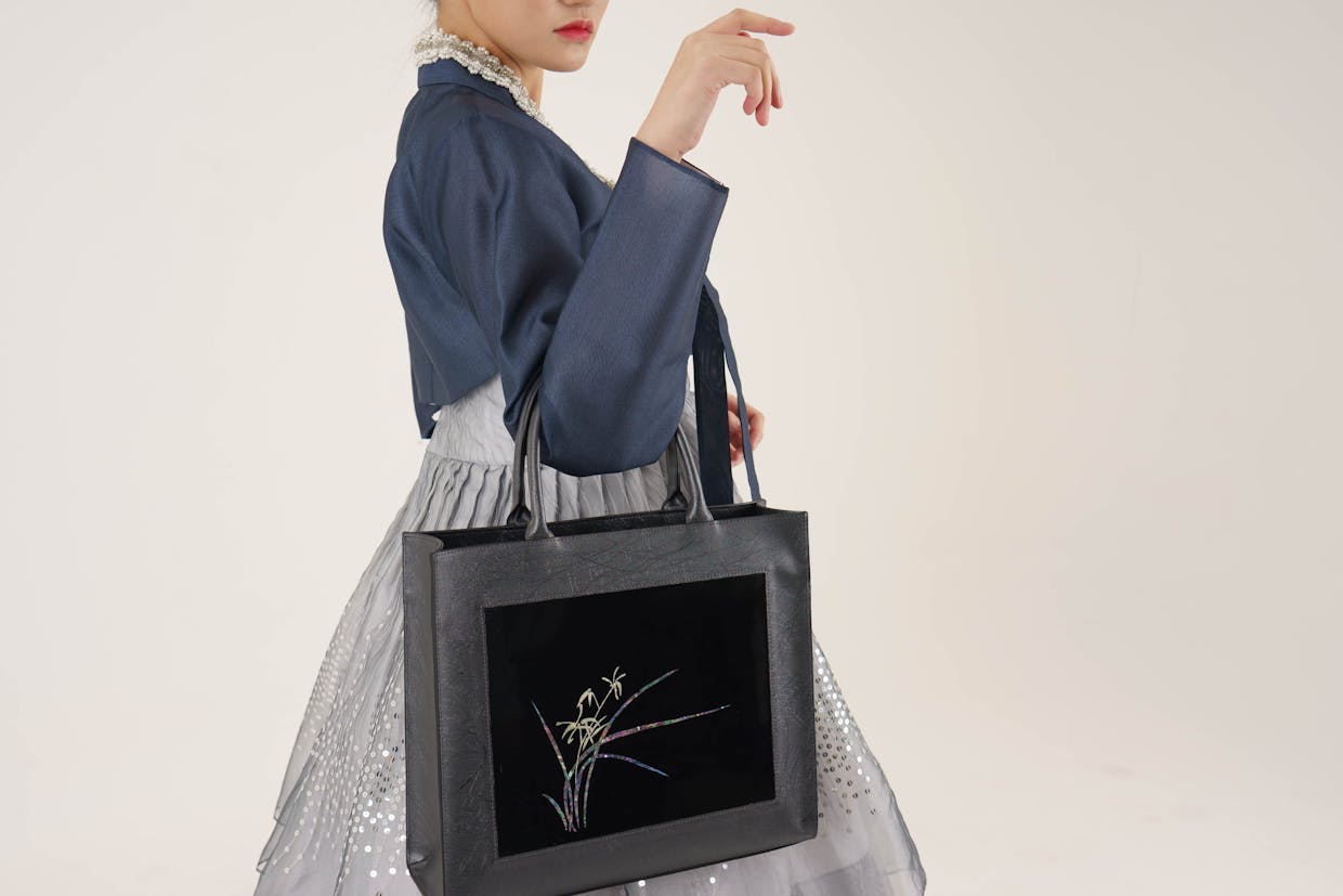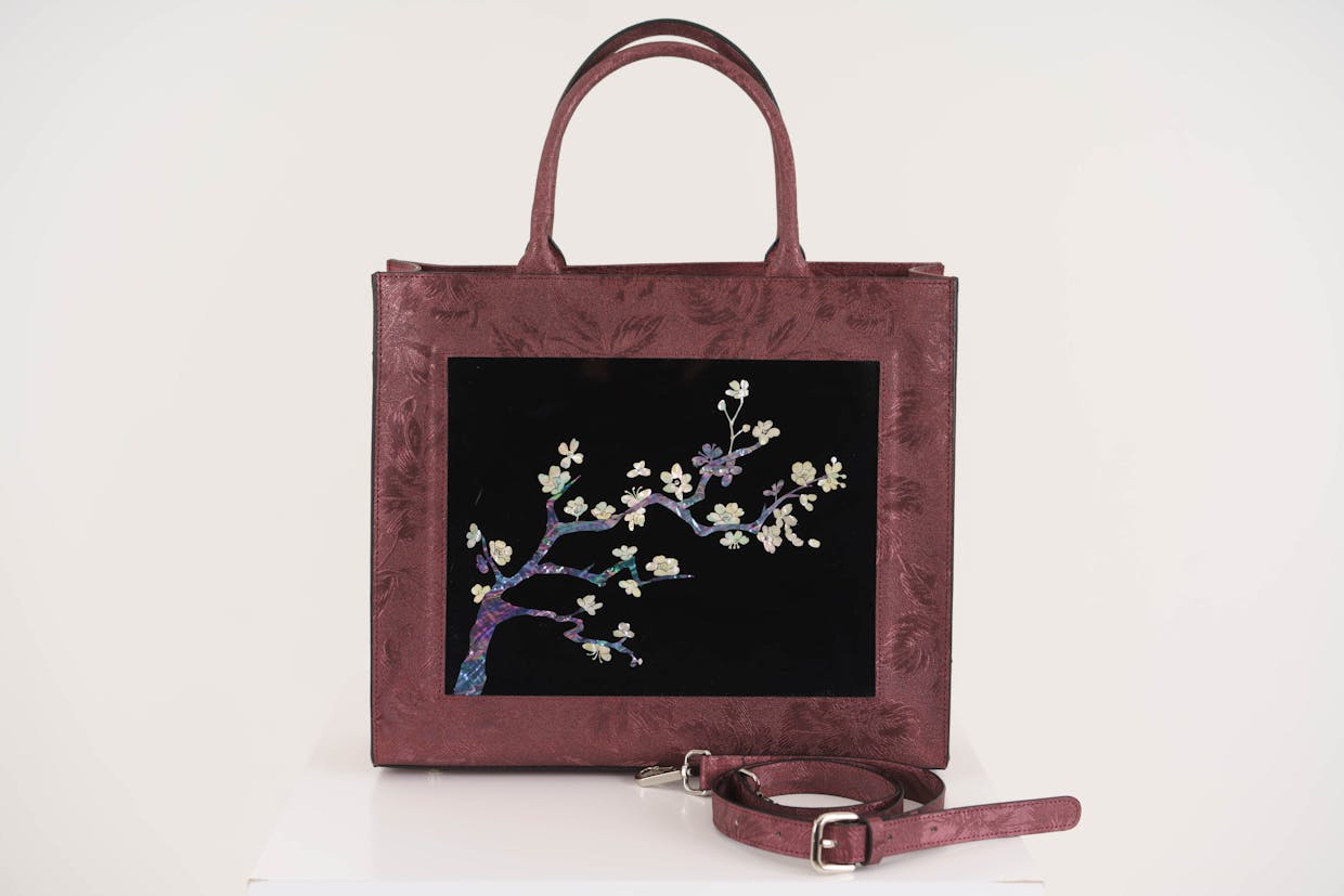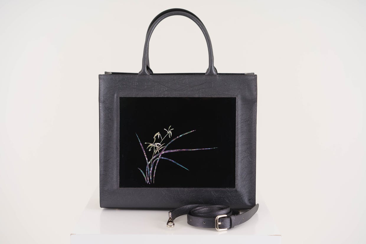 자개판은 알루미늄판을 사용하여 가방에 부착하였을때 보다 더 단단하고 안정적으로 가방과 결합할 수 있게 하였습니다. 또한 42년 장인의 손길로 한땀한땀 정성스레 자개를 부착하였습니다.사군자 각각의 아름다움을 표현하기위해 많은 노력을 기울였습니다.