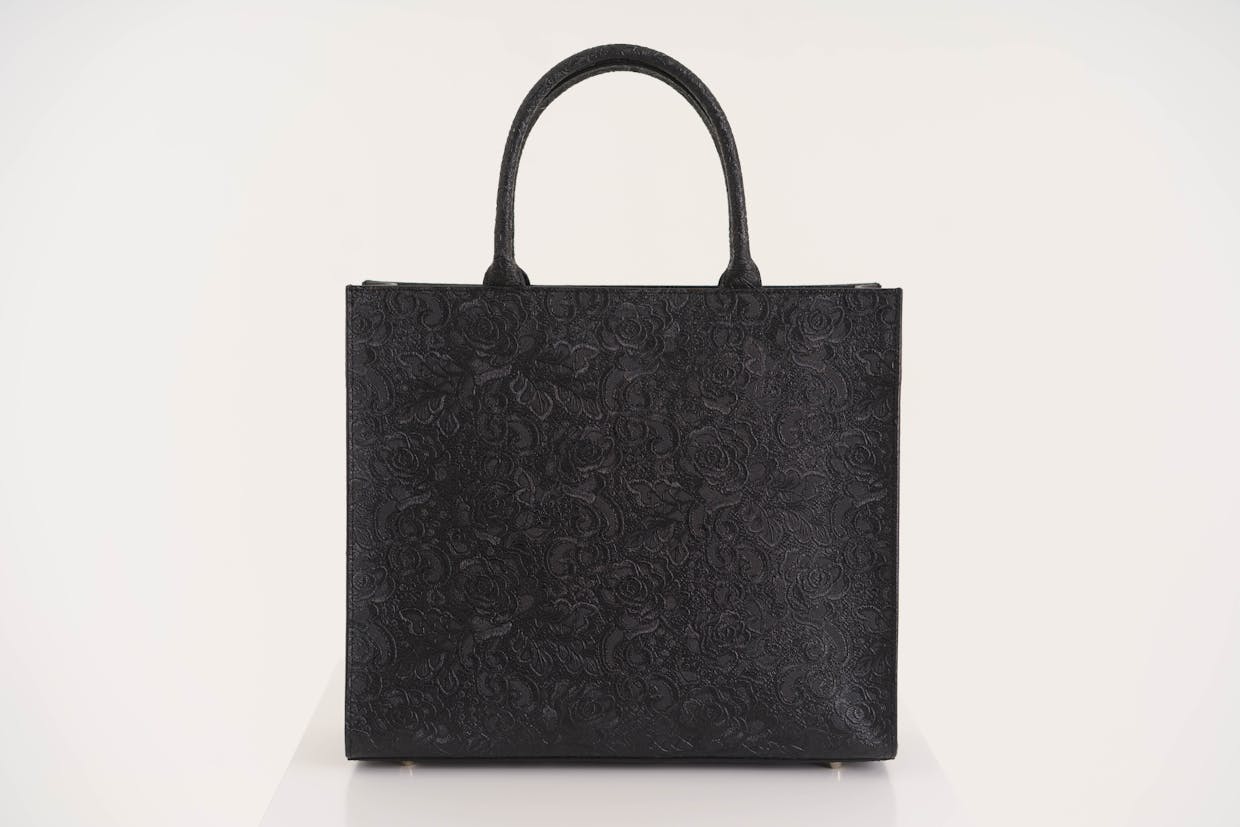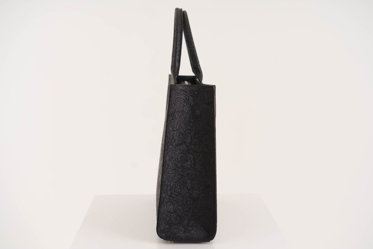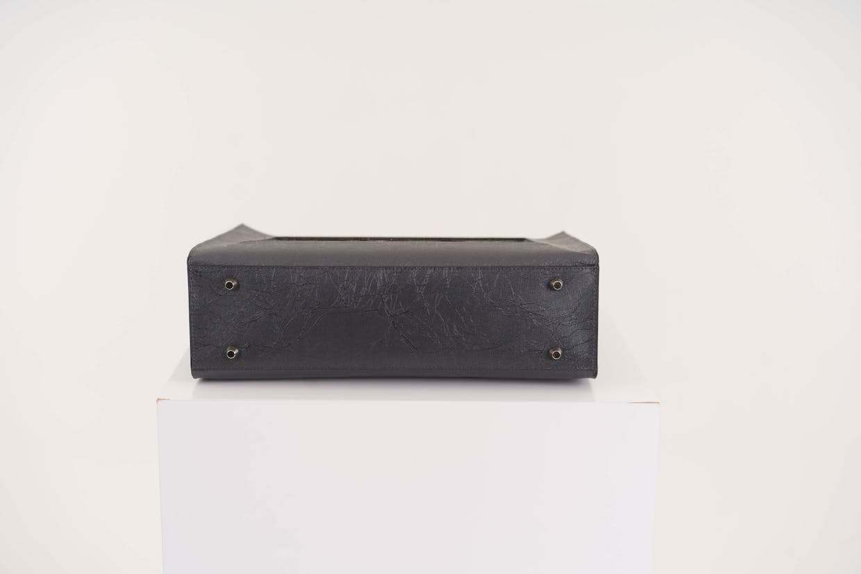 대나무는 사철 푸르고 곧게 자라는 성질 때문에 높은 품격과 강인한 기상을 상징합니다.그런 대나무를 더욱 더 돋보일 수 있게 강렬하고도 차분한 블랙컬러 비건원단으로 제작하였습니다.가죽에 꽃과 나뭇잎이 아름답게 짜여져 있습니다.