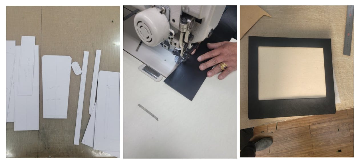 오랜경력의 가방장인과 함께 패턴을 뜨고 가방을 제작하였습니다.가방속 자개판이 들어가야하기 때문에 여러 시행착오가 많았으나,마침내 저희의 생각대로 아름답게 가방을 만들어 낼 수 있었습니다.