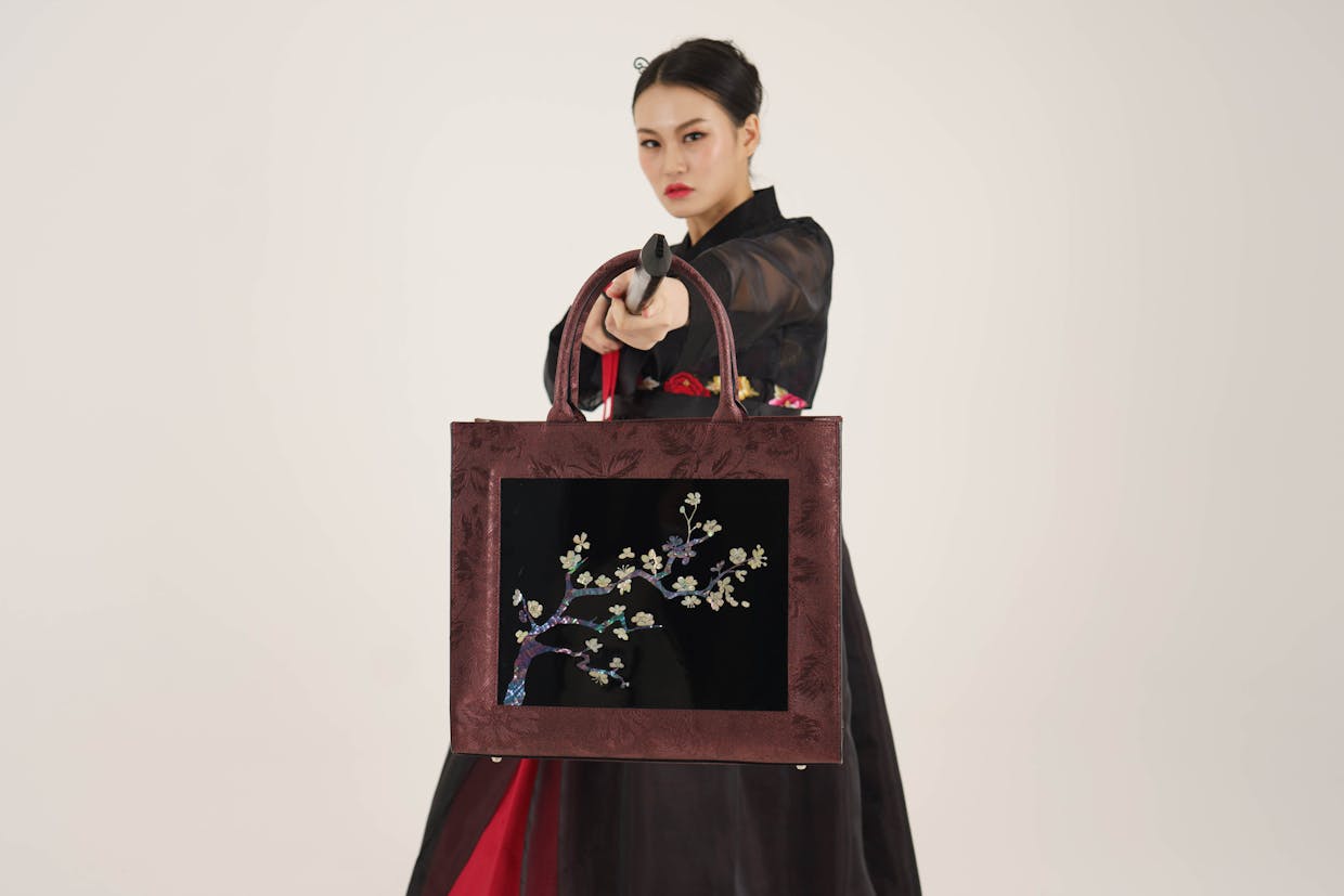 1. 디자인 구상저희의 아이디어를 가방으로 표현하고자 한달이 넘게 가방 디자인을 구상하였습니다.결코 자개판을 가방과 결합을 한다는게 쉬운일은 아니였습니다. 어떤모양으로 들어갈지, 어떻게 봉제를 할 지 하나하나 오랜 시간 연구하였습니다.편안하게 들고다닐 수 있으면서 수납력도 챙겨야 했기때문에 적절한 크기와 내부 수납력,보다 더 좋은 퀄리티의 가방을 보여드리기 위해 고급부자재와 원단을 고른 후,매화,난초,국화,대나무를 손으로 하나하나 그려 가방과 어울리는 사군자를 직접 디자인하였습니다.