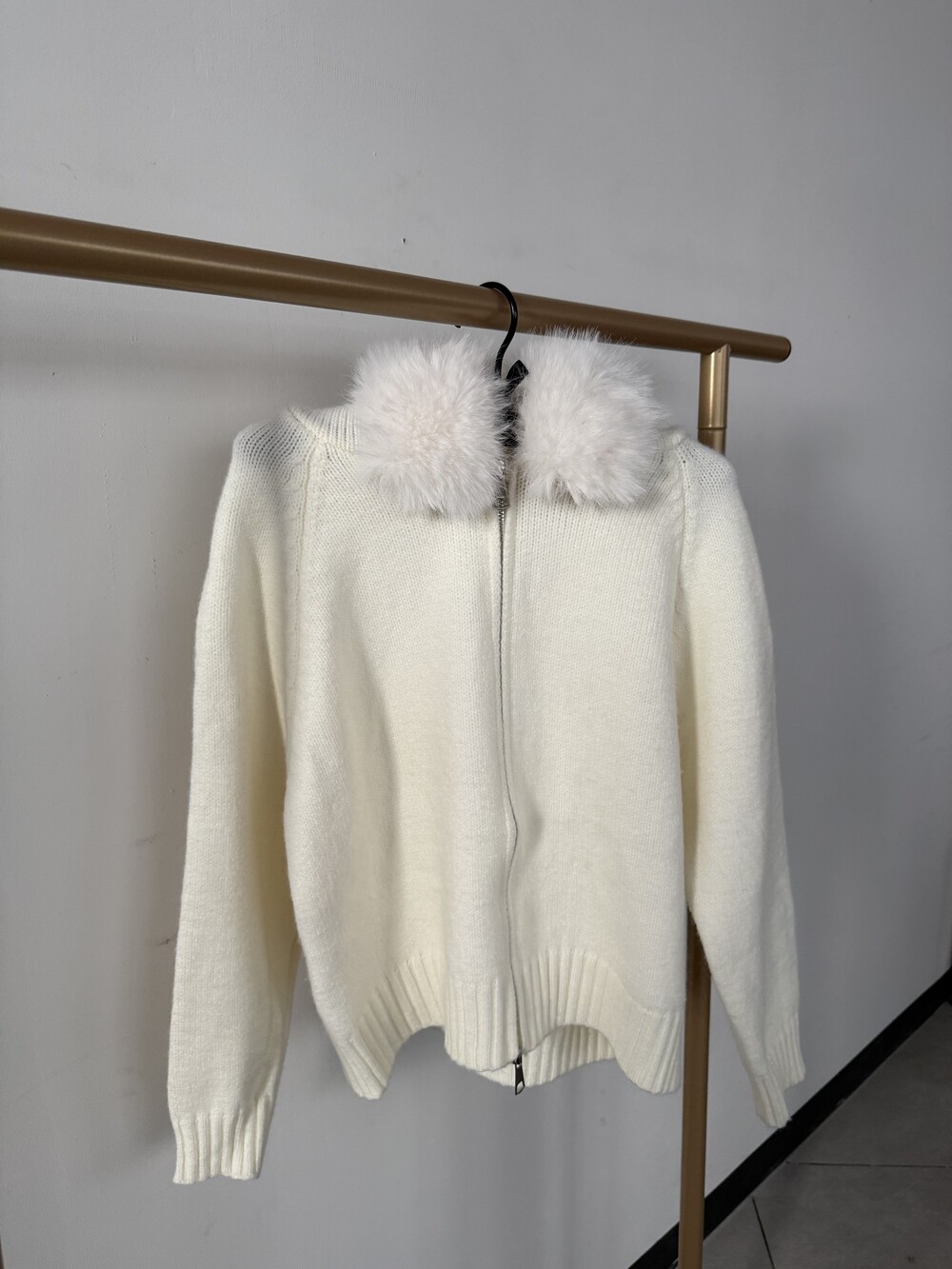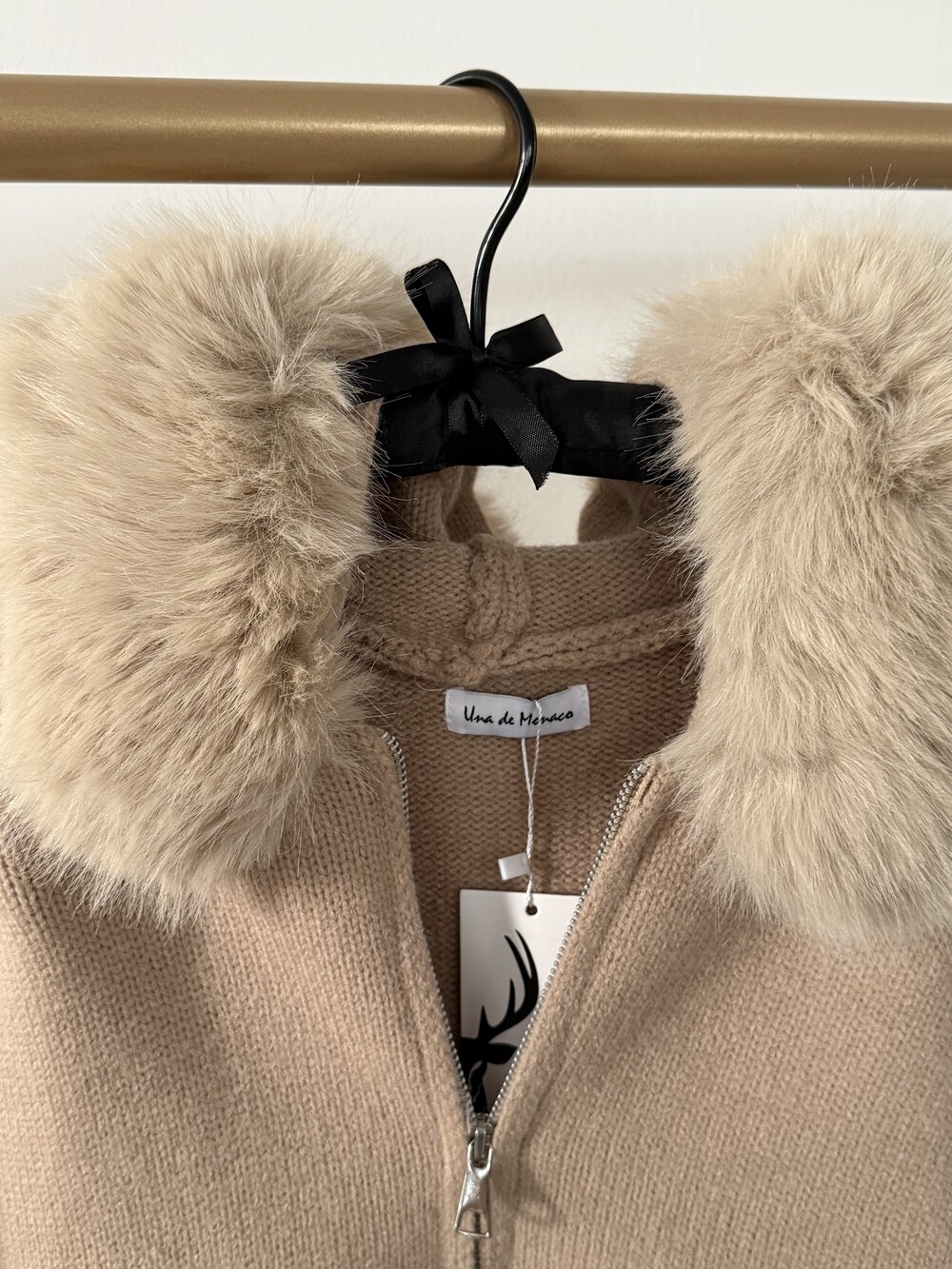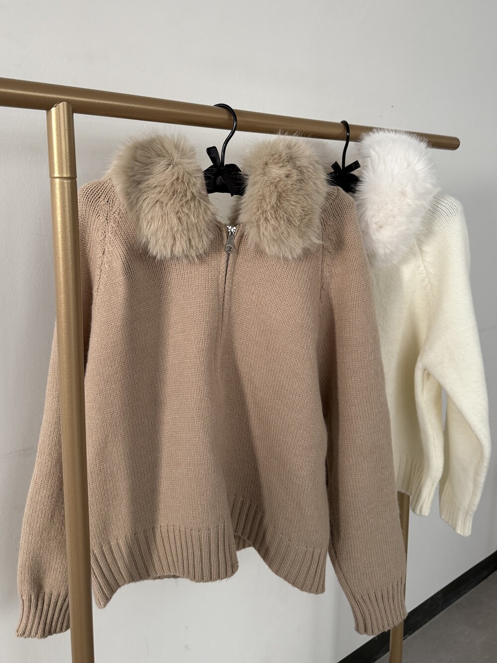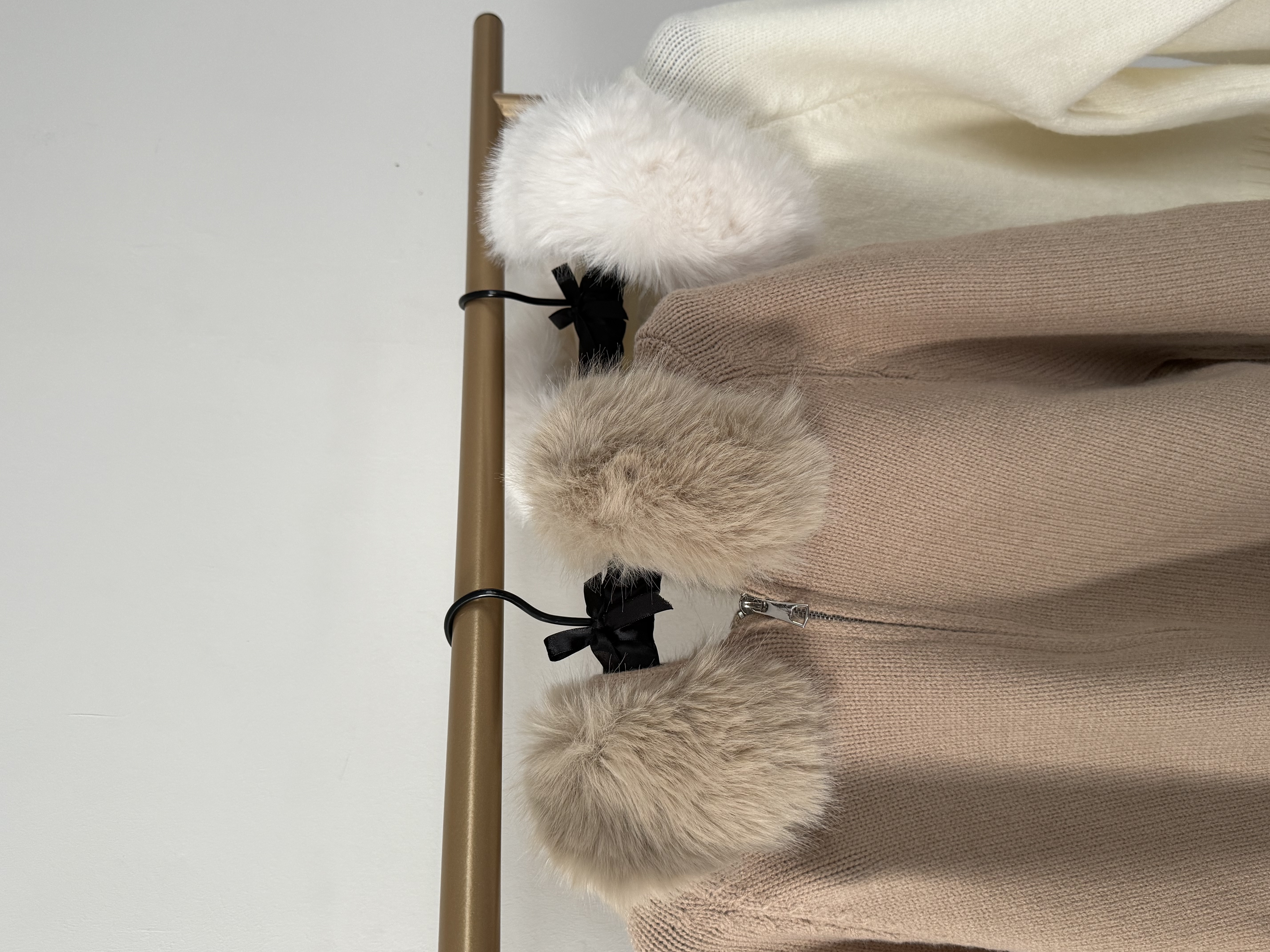 고급스러운 질감의 니트 소재 위로 풍성한 퍼카라가 더해져 따뜻하면서도 여성스러운 분위기를 완성합니다.