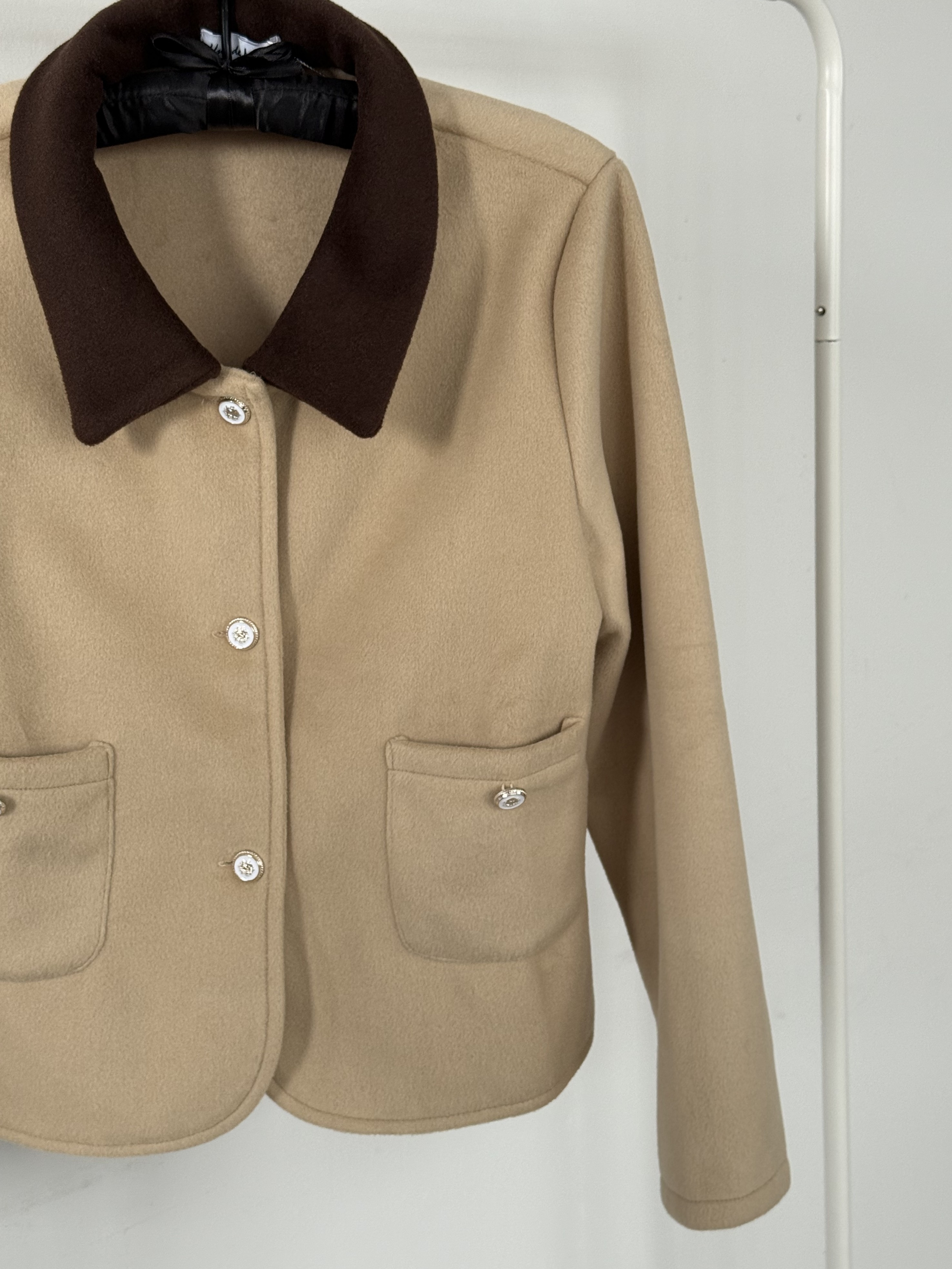 ✔ 카멜베이지 바디 + 딥브라운 카라의 감각적인 배색