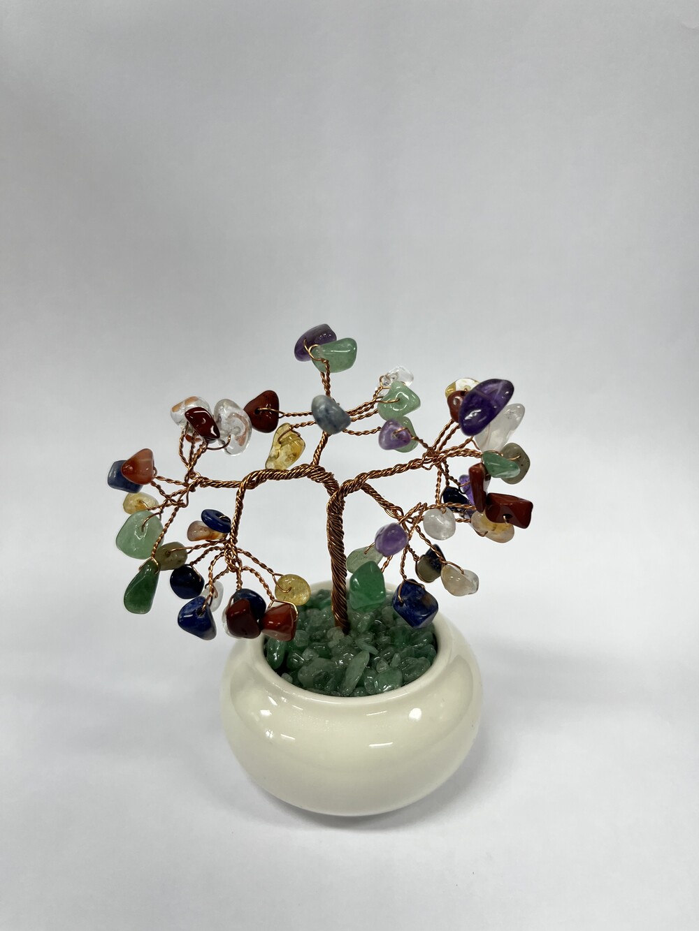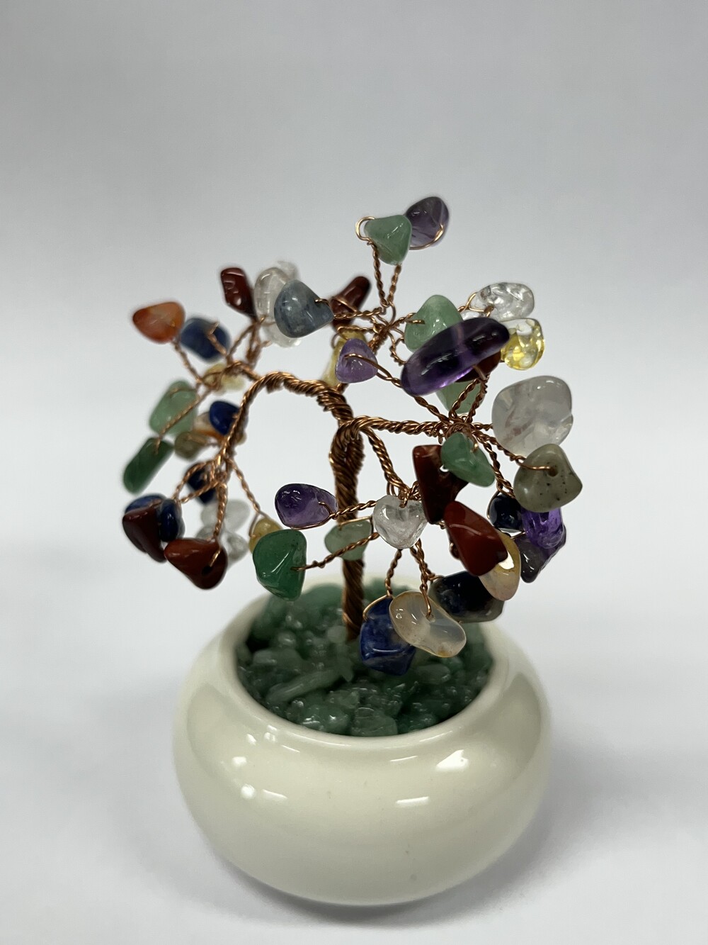 다채로운 돌로 이루어진 이 생명나무는 미학과 웰빙을 결합한 독특한 예술 작품입니다. 손으로 만든 이 제품은 여러 색깔의 천연석을 구리선에 꿰어 만들었습니다. 각각의 돌은 고유한 에너지적 속성을 가지고 있어서 실제로 긍정적인 파동이 농축됩니다. 세라믹 받침대 위에 놓인 이 웅장한 나무는 귀하의 실내에 쾌활함과 활력을 가져다 줄 것입니다. 생일이나 결혼식 또는 기타 특별한 행사를 축하하는 데 이상적인 선물입니다.