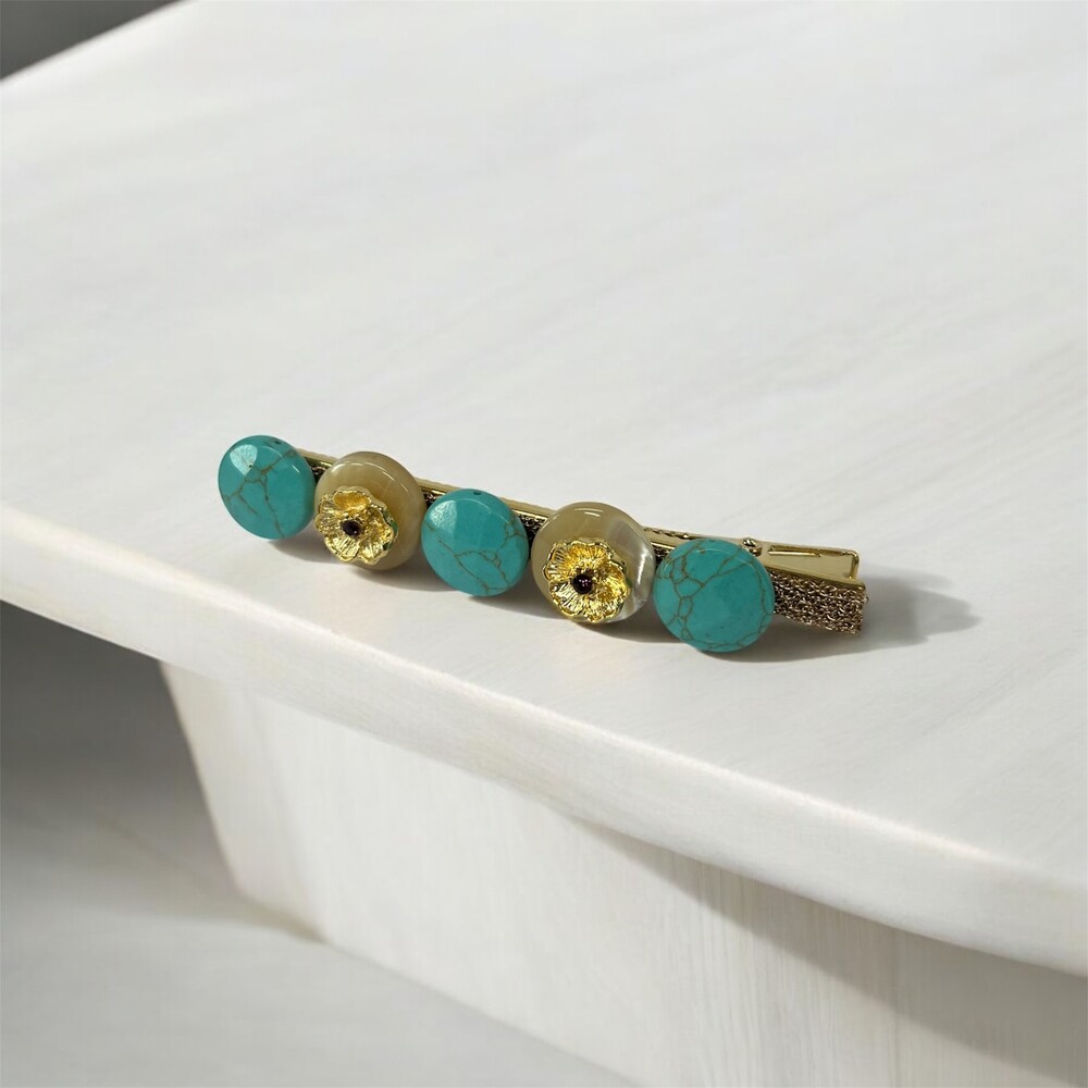 이 독특하고 눈길을 끄는 브로치로 스타일을 한 단계 업그레이드하세요. 생생한 청록색과 부드러운 마더 오브 펄이 현대적이면서도 시대를 초월한 놀라운 대비를 만들어냅니다. 캐주얼한 외출에서 특별한 이벤트에 이르기까지 모든 경우에 적합한 이 다재다능한 제품은 룩에 세련미를 더해줍니다. 결코 유행을 타지 않는 제품에 투자하세요.