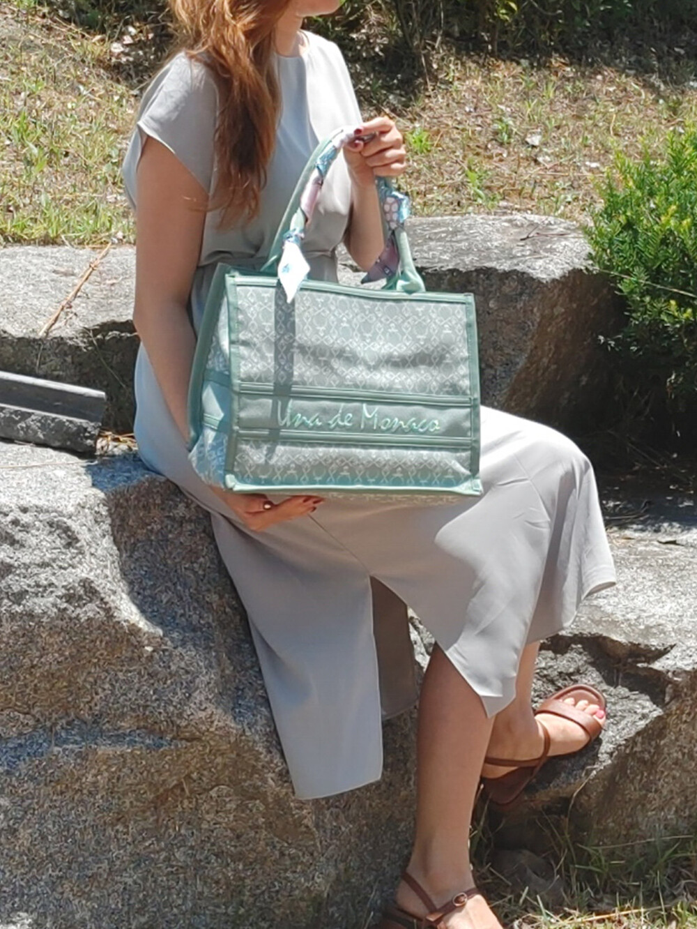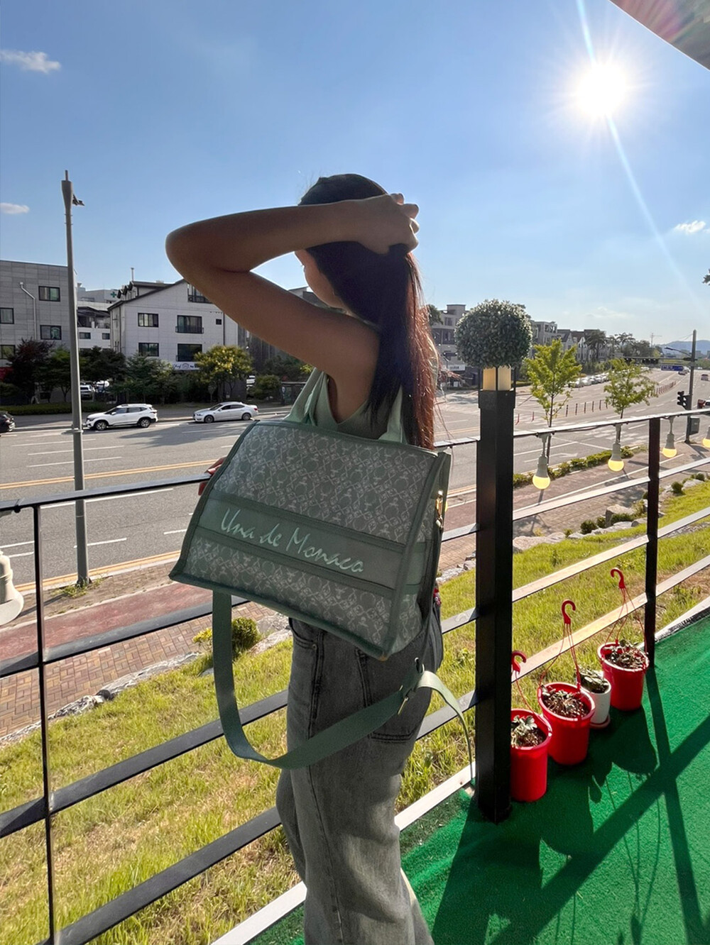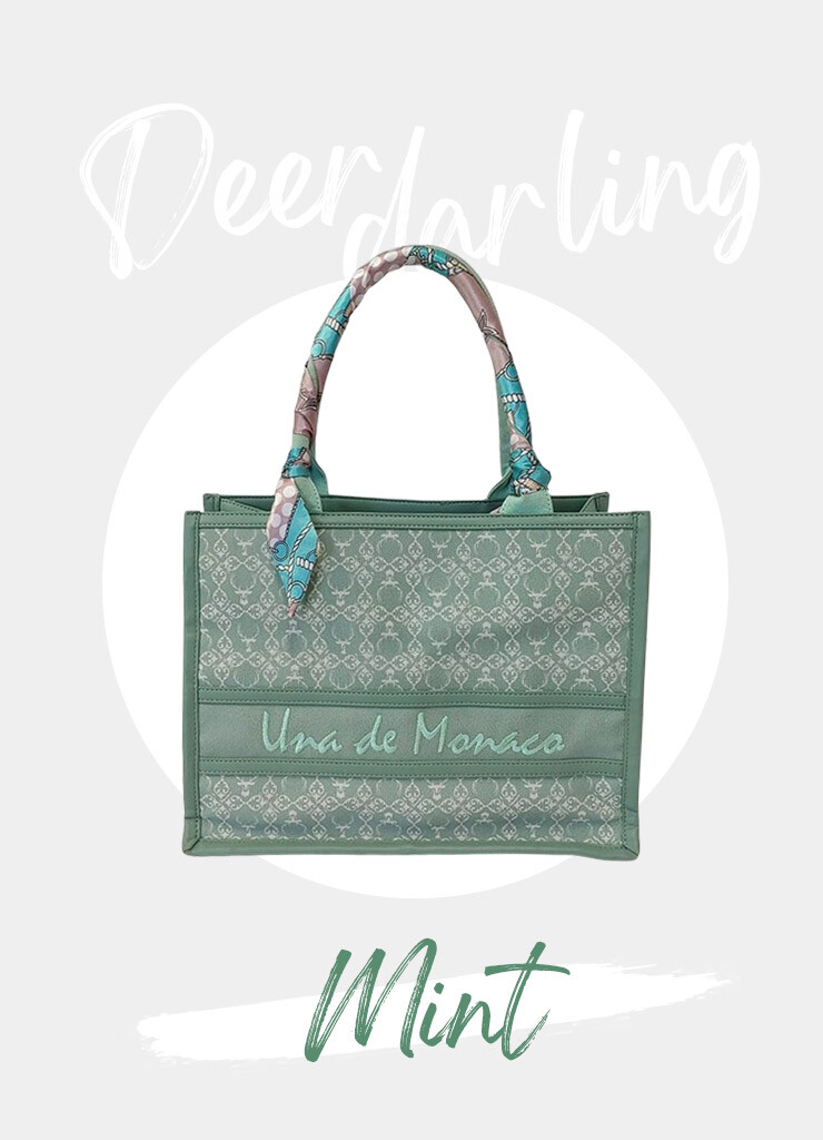 디어달링백은 우나드모나코의 시그니처 심볼 사슴로고가 패턴화 되어 있어 독특한 질감을 보여줍니다. 밋밋한 단색의 캔버스 가방들과 차별되는 큰 특징입니다.