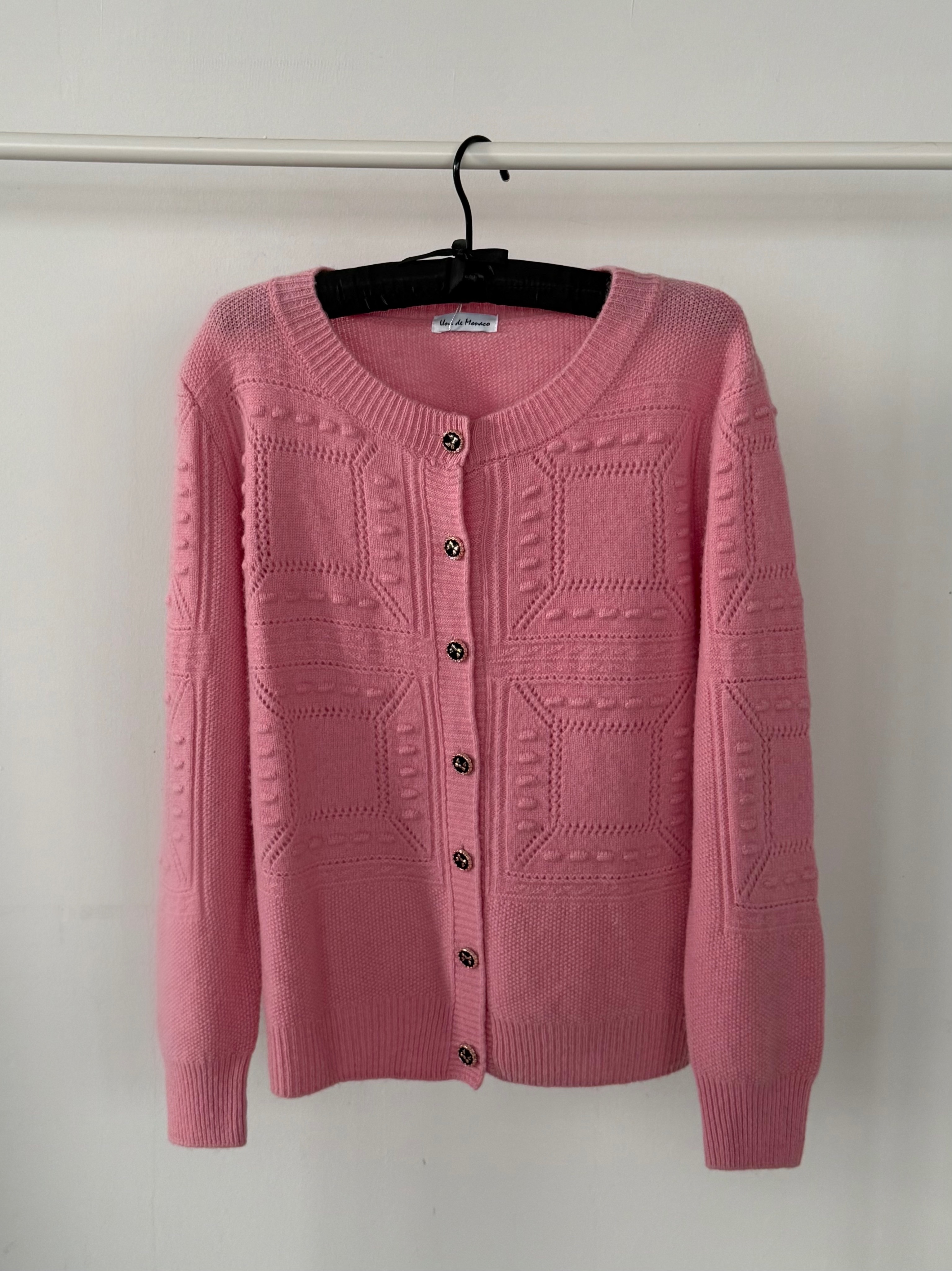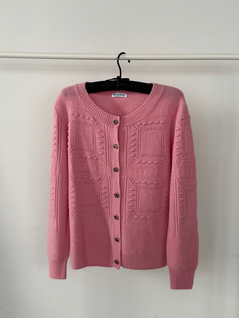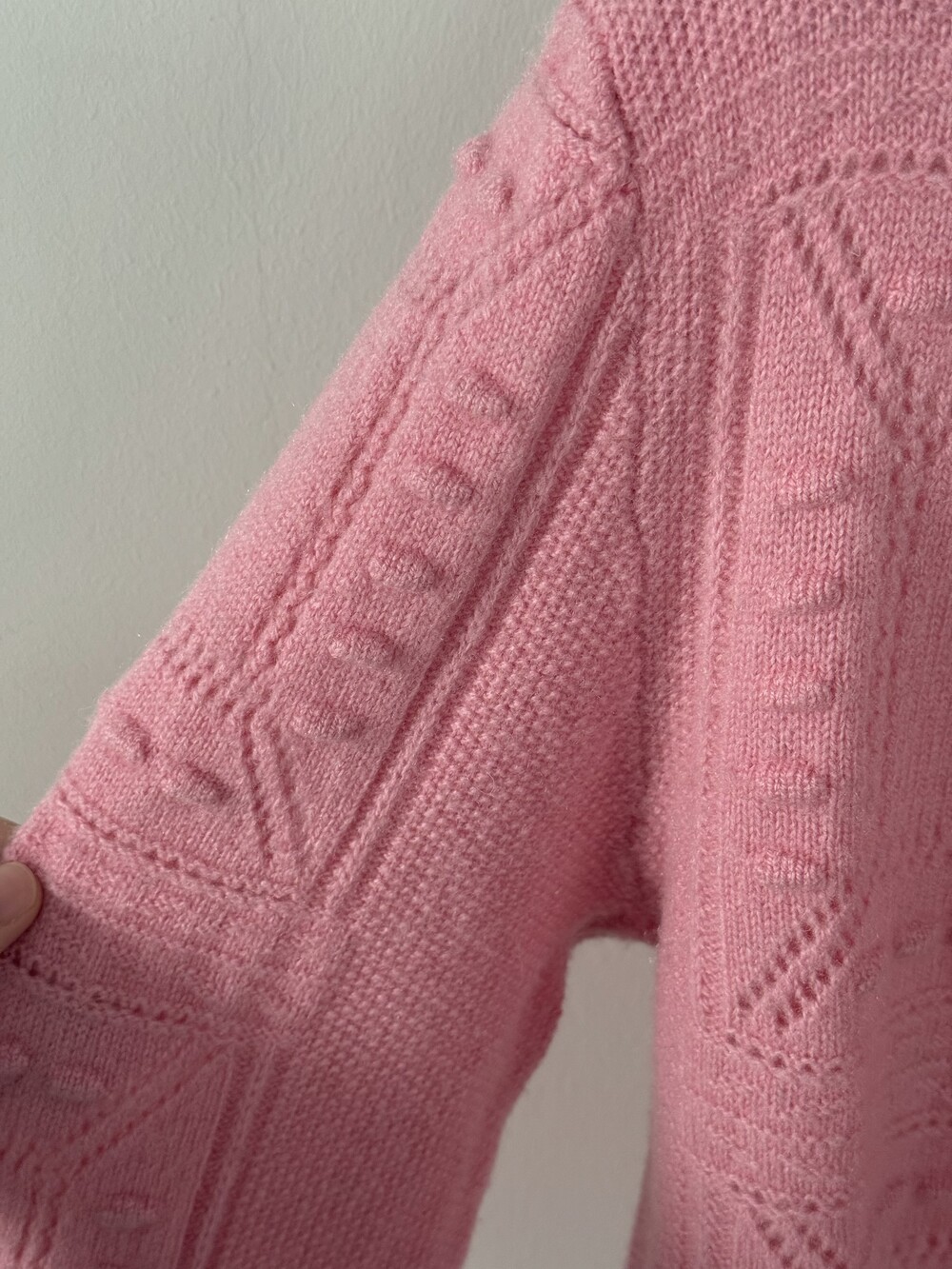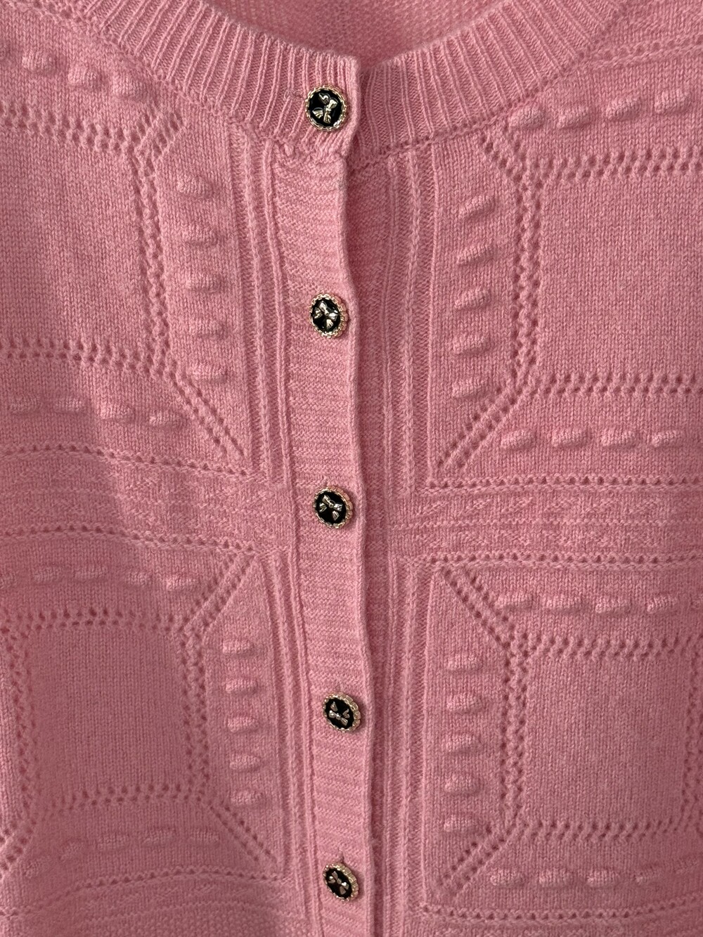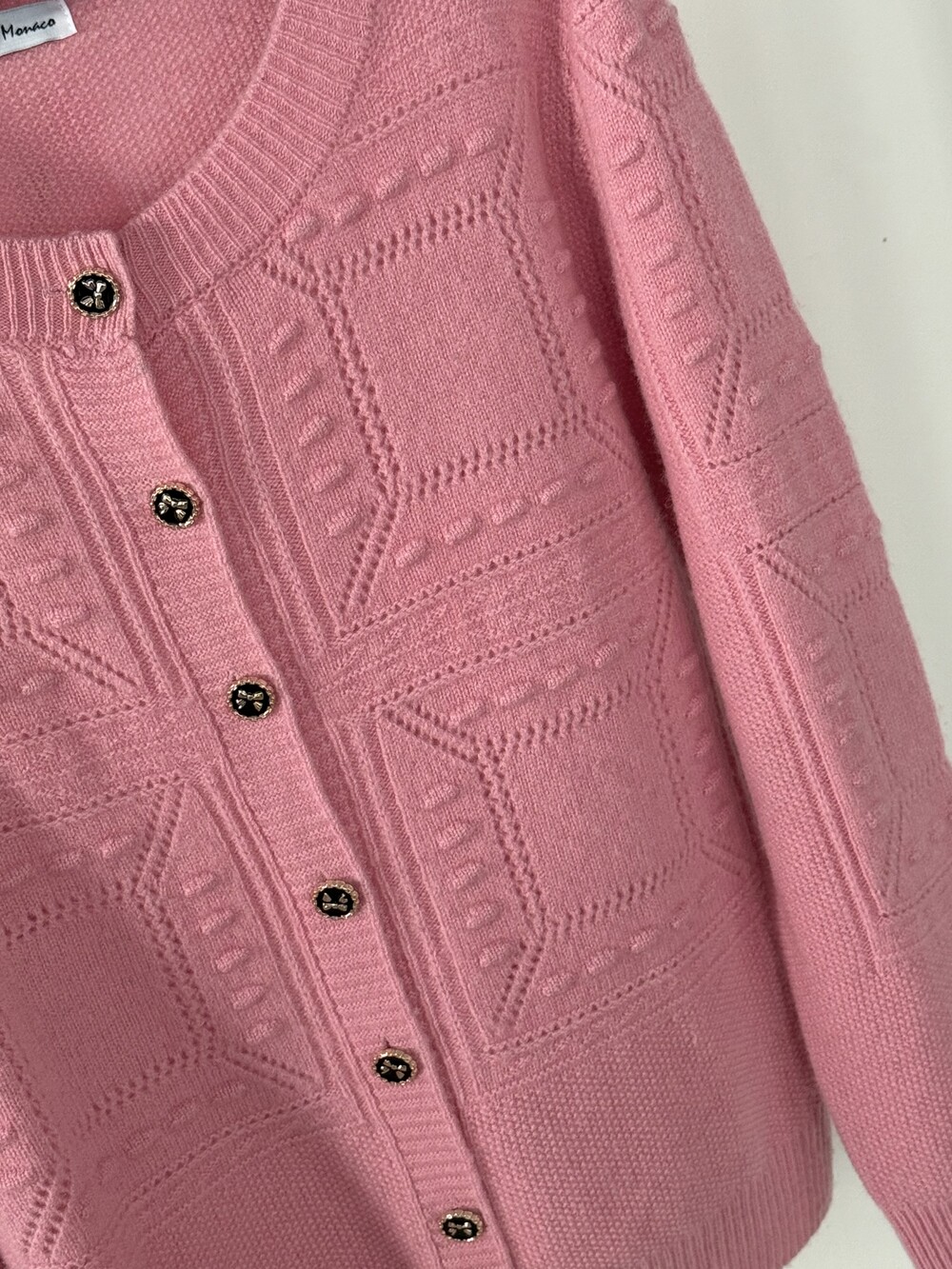고급스러운 핑크빛 컬러 위로 자카드 짜임과 입체 도트 디테일이 더해져,