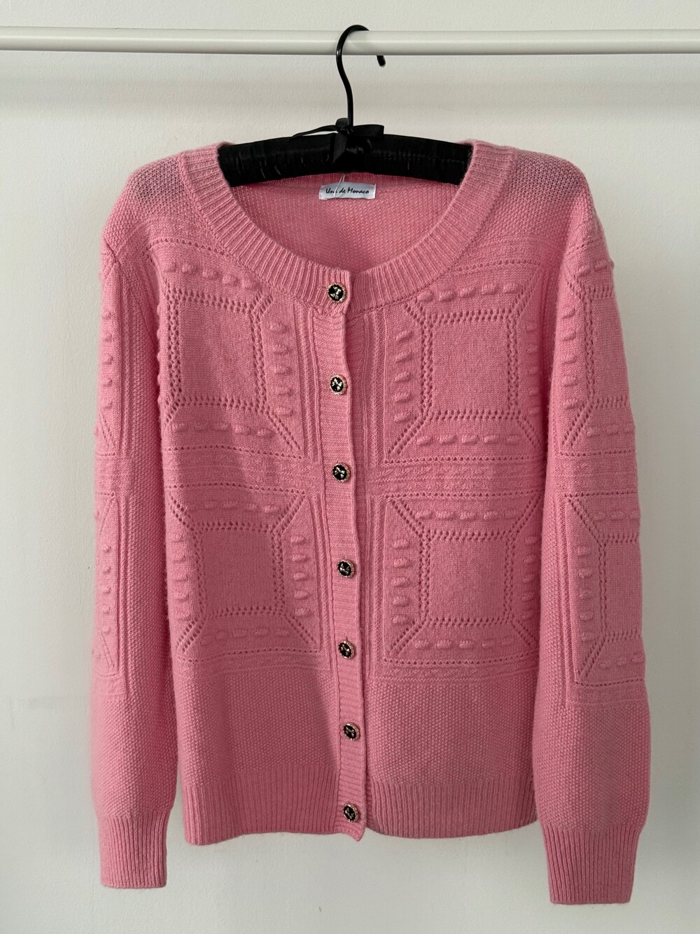 보송하고 따뜻한 터치감이 매력적인 100% 울 니트 가디건입니다.