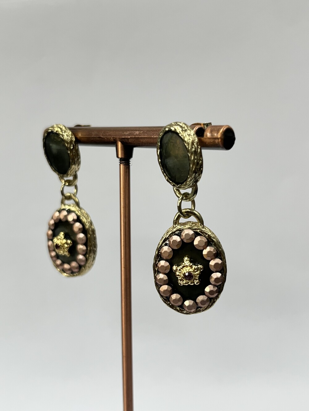 낭만적이고 보헤미안적인 디자인의 이 귀걸이는 섬세하고 우아한 보석을 좋아하는 여성을 겨냥한 것입니다. 여성성과 부의 상징인 돌과 금으로 만든 금속이 당신의 룩에 밝은 느낌을 더해줄 것입니다.