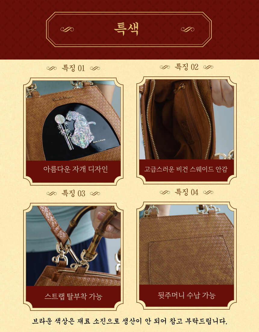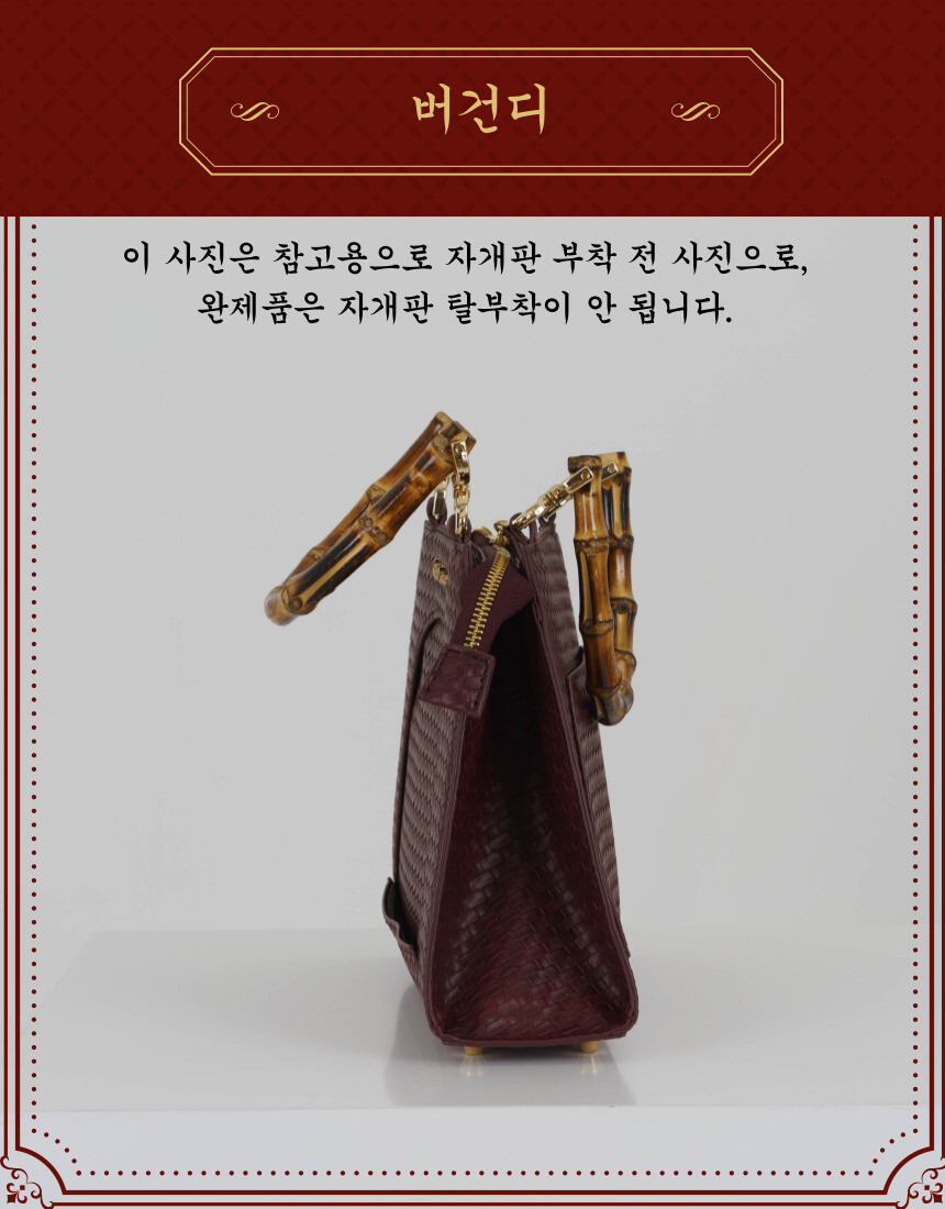 고급스러운 그레이와 버건디 색상의 비건가죽 (PU)로 제작하였습니다.